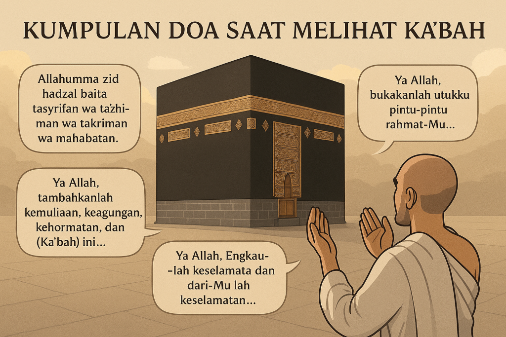 Ketika pertama kali melihat Ka’bah, hati akan bergetar, mata berkaca-kaca, dan rasa haru menyelimuti jiwa. Momen ini adalah waktu mustajab untuk berdoa, karena banyak ulama yang menyebutkan bahwa doa pada saat pertama kali melihat Ka’bah akan dikabulkan oleh Allah SWT. Berikut beberapa doa yang bisa diamalkan: